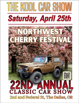 The Car Show is part of the Northwest Cherry Festival Festivities include a parade, food booths, and entertainment within walking distance. Make your motel reservation early.